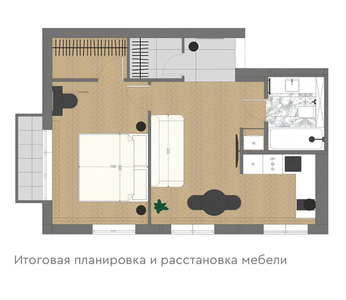 Дизайн-проект 2-комнатной квартиры 42 кв.м.